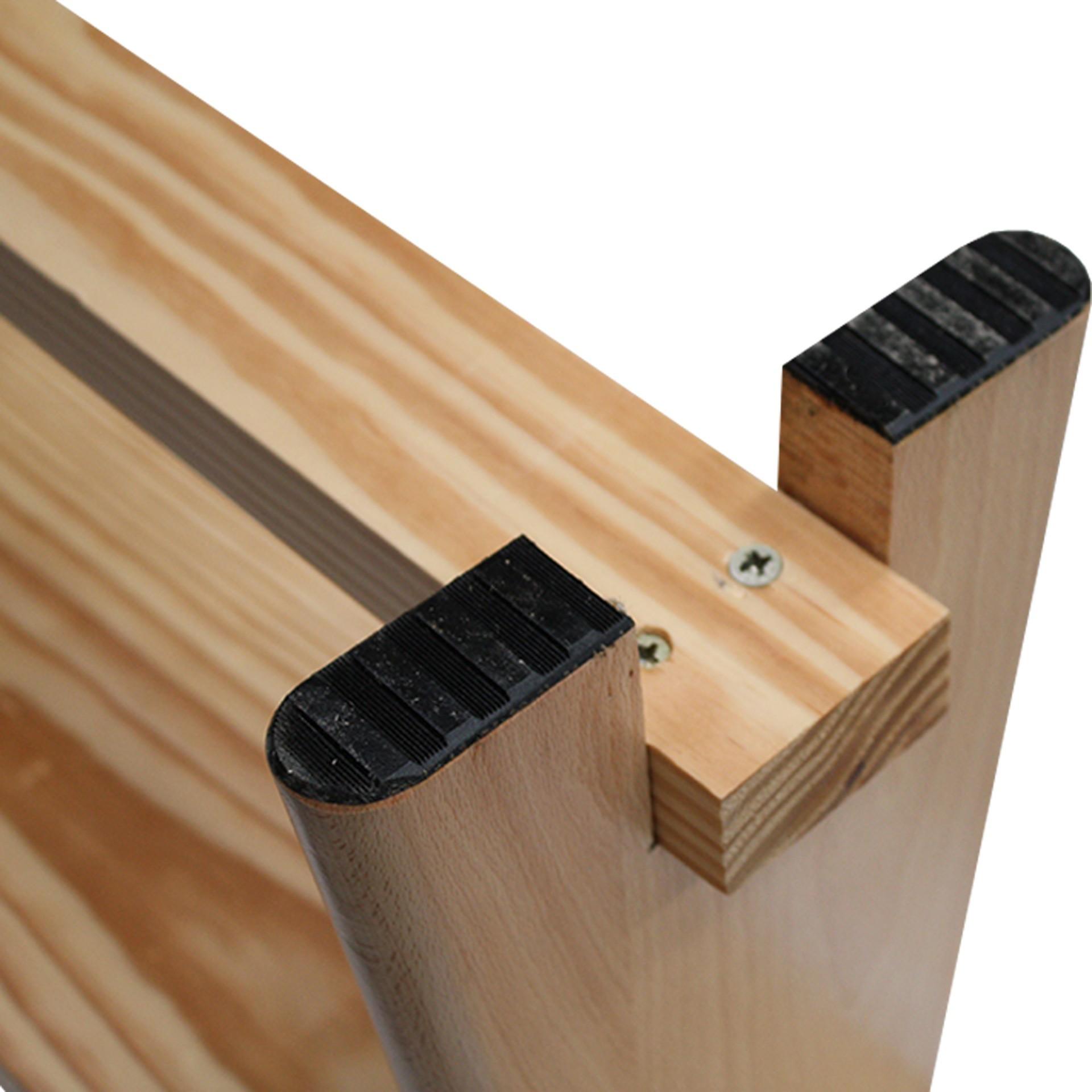 Banco sueco fabricado en madera de pino melis (tabla superior) y madera de haya (patas).Está provisto de refuerzos metálicos entre patas, de gancho metálico para sujeción a espaldera y de tacos de goma antideslizante en cada una de las patas.Tapa y patas de grosor 3,5cm. Provisto de dos patas los de 1mts, de tres los de 2mts y de cuatro patas los de 3mts.Todos los modelos son de 22cm de ancho y 34cm de alto.