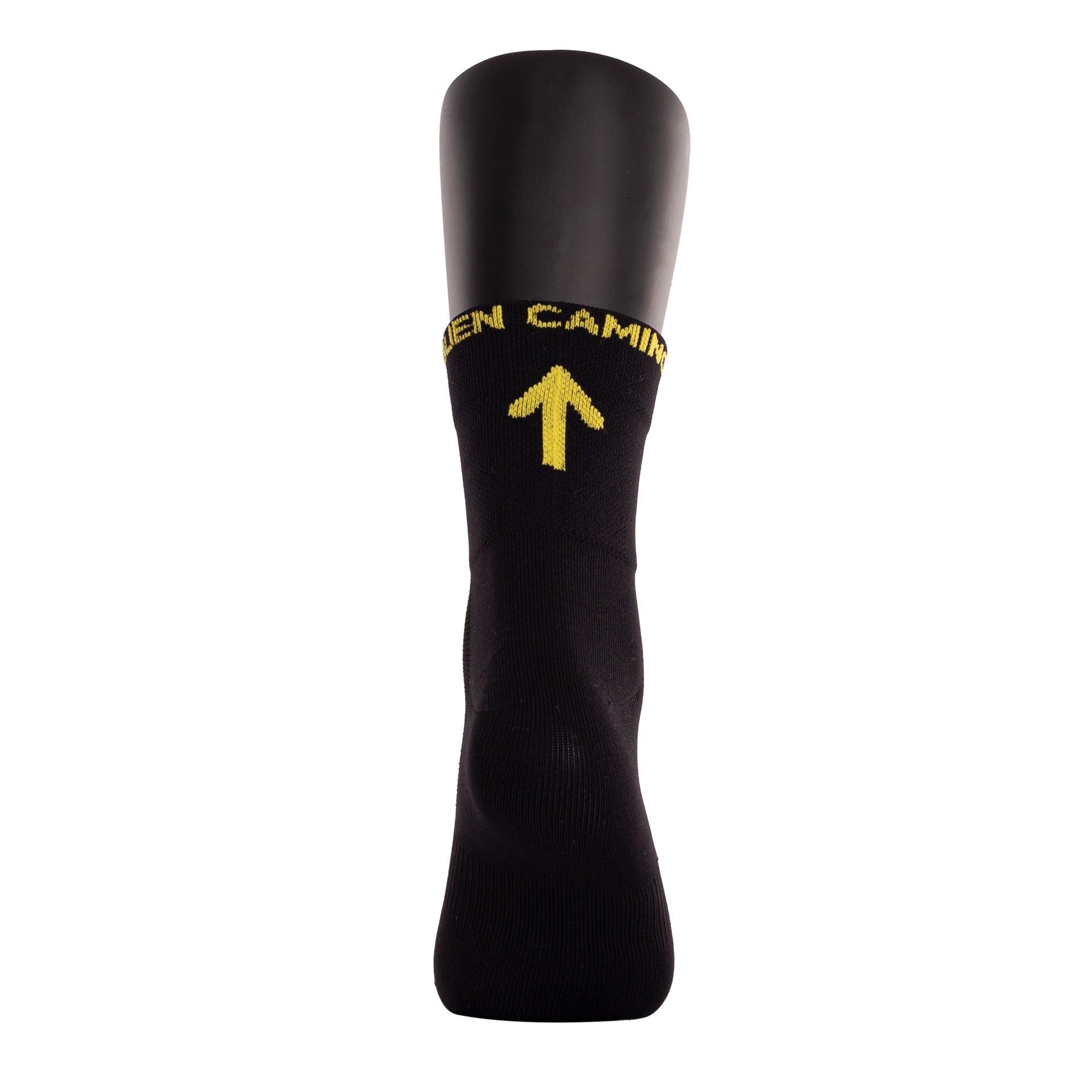 Estos calcetines de caña presentan un diseño único que incluye emblemas del Camino de Santiago: la concha amarilla y la flecha. En la parte superior del calcetín va incluida la frase "BUEN CAMINO".Fabricados en material de alta calidad, son los aliados perfectos para tu aventura.