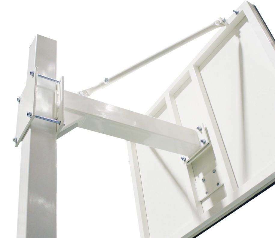 ANCLAR SIEMPRE AL SUELO. Juego de 2 canastas para empotrar al suelo mediante una base de anclaje (incluida). Ideal para pistas deportivas de exterior. Vuelo canastas 1,00 mts. Contiene doble sistema de tuercas de nivelación, tanto en soporte de tablero como en base de anclaje, incorpora también dos tirantes superiores de estabilización a las esquinas del tablero. Consulte las diferentes variedades de accesorios que permite, como aros, tableros, redes, protecciones varias.