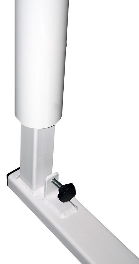 Juego de 2 postes fabricados en tubo de aluminio sección 90mm con base metálica provista de contrapeso y ruedas de nylon. Posibilidad de atornillarlo al suelo. Este artículo está formado por 2 unidades. Se fabrica bajo pedido.Packaging: 3 bultos.Bulto 1 (postes): 160x20x20cm. Peso: 10kg.Bulto 2 (base): 90x40x60cm. Peso: 36kg.Bulto 3 (base): 90x40x60cm. Peso: 36kg.