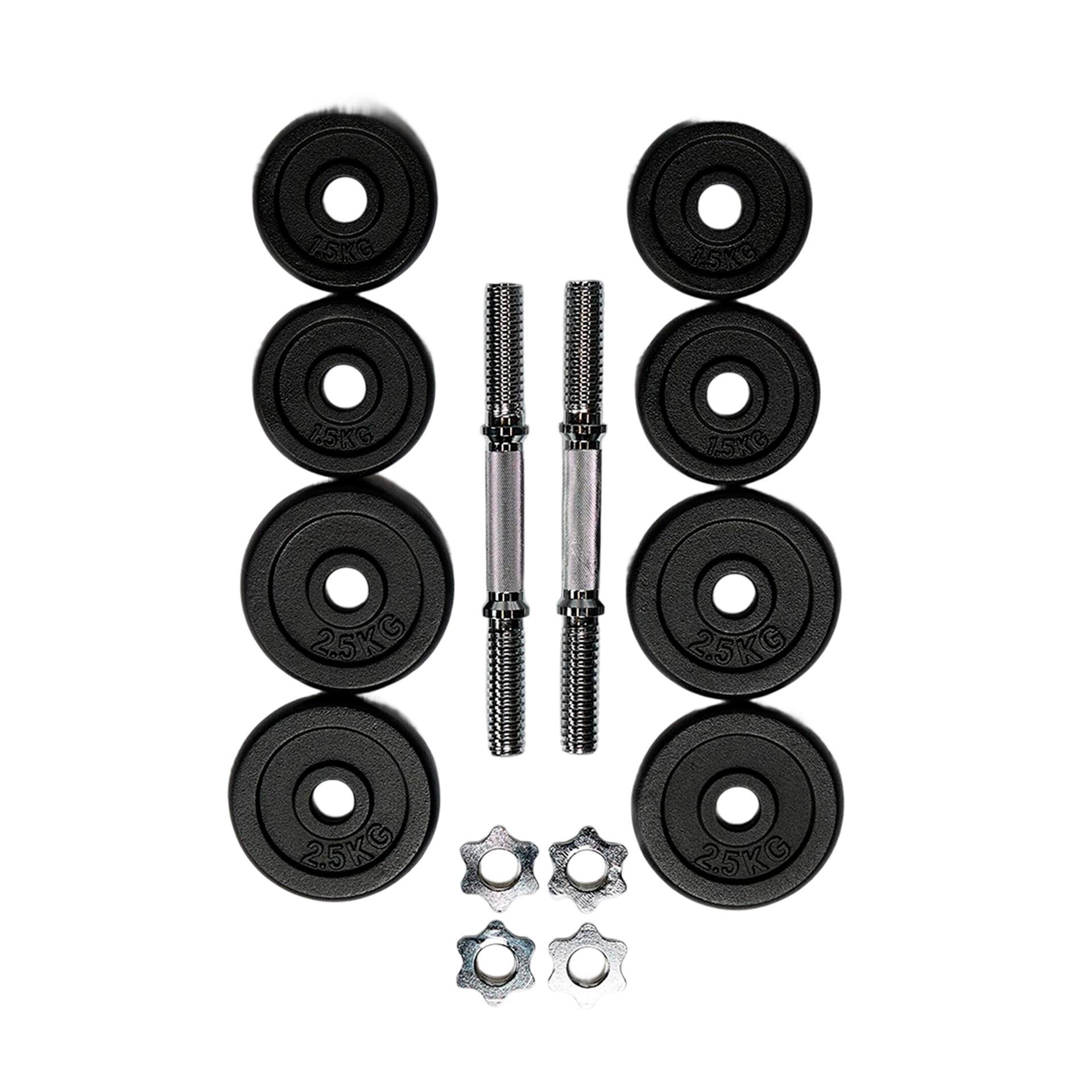 Este kit esta especialmente diseñado para entrenamientos en casa con pesas. Y es que podrás realizar numerosos ejercicios para trabajar bíceps, tríceps, hombros, pecho...Posibilidad de evolucionar los entrenamientos con diferentes pesos.El kit incluye:- 2 barra. Medida de la barra: 36cm. Diámetro de la zona para discos: 30mm. Medida del espacio para agarre: 15cm.- 2 bloqueadores de discos.- 4 discos de 1,5kg. Diámetro del disco: 13,5cm. Diámetro del espacio para barra: 30mm.- 4 discos de 2,5kg. Diámetro del disco: 16cm. Diámetro del espacio para barra: 30mm.Cada kit incluye un maletín para guardar todos los elementos. Este maletín se sirve dentro de una bolsa. Medidas del maletín: 39x29x8cm.Unidades por caja: 1.Medidas de la caja completa: 39x8x29,5cm. Peso de la caja: 20kg aprox.