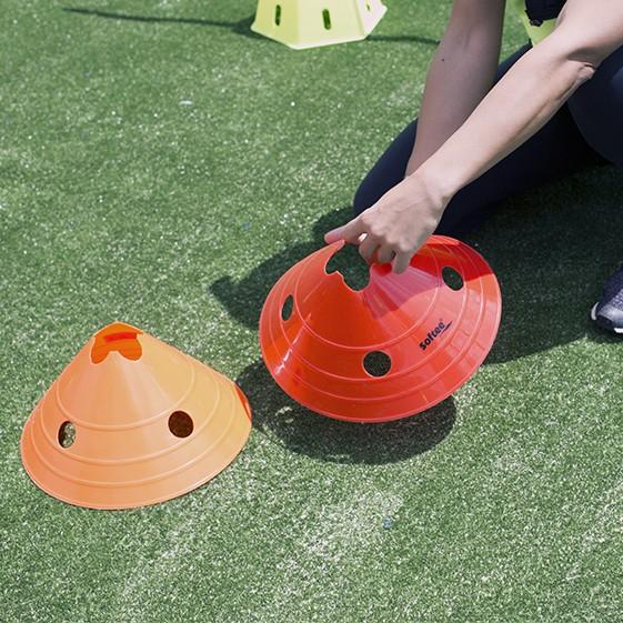 Cono flexible de gran dimensión para entrenamiento y refuerzo de los jugadores. Ayuda a delimitar zonas de juego, crear rutinas o realizar ejercicios de agilidad y coordinación. Ofrecemos colores de gran visibilidad. Se vende por unidad. Diámetro: 30cm. Altura: 14cm.