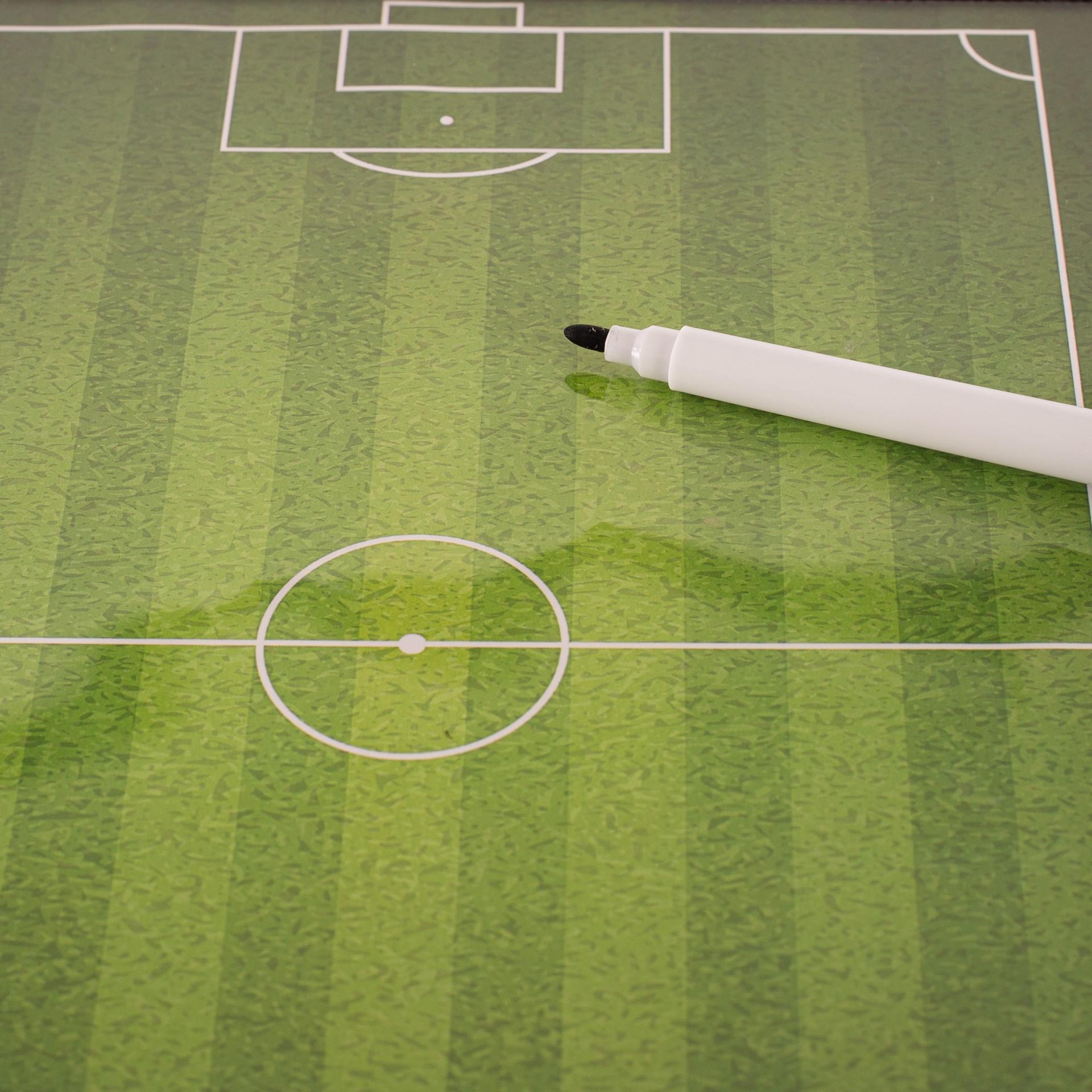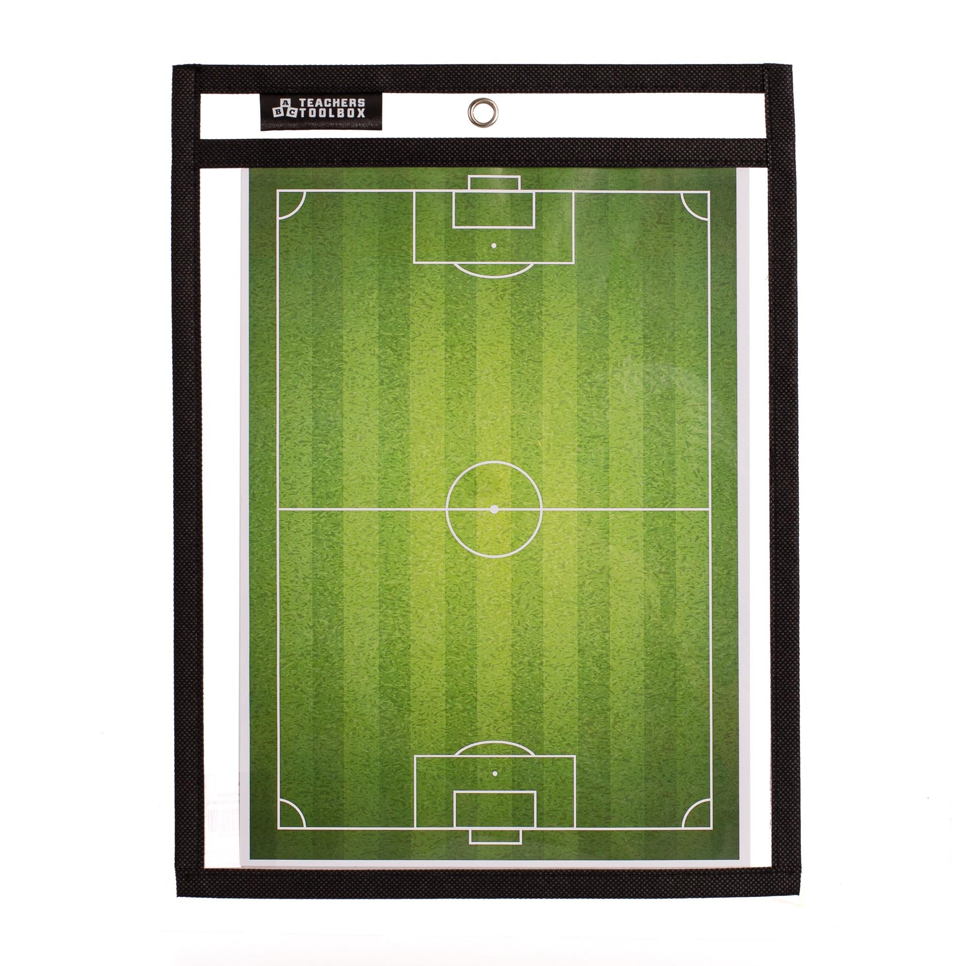 Funda de PVC con función de pizarra. Puedes deslizar en ella diferentes pistas de deporte como fútbol, basket, tenis... para diseñar la táctica y las posiciones de juego y modificarlas tantas veces como quieras (Dimensión de la hoja: A4). Incluye rotulador que se borra fácilmente. También está destinado a actividades de aprendizaje. Este producto no incluye las copias de las diferentes pistas deportivas.Medidas del producto: 34x25,4cm.