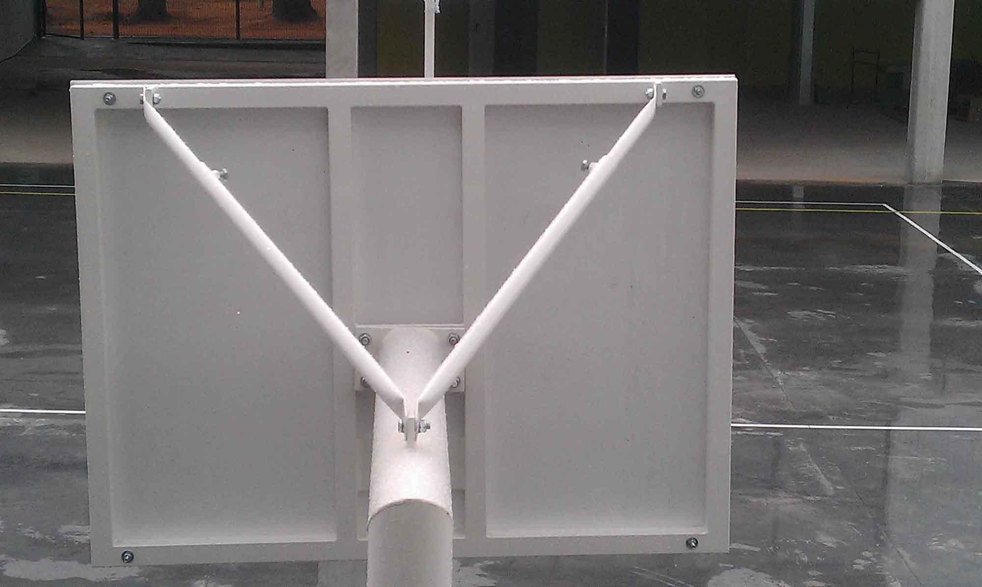 ANCLAR SIEMPRE AL SUELO. Juego de 2 canastas de sección redonda para empotrar al suelo mediante una base de anclaje (incluida). Ideal para pistas deportivas de exterior. Vuelo canastas 1,65 mts. Contiene doble sistema de tuercas de nivelación, tanto en soporte de tablero como en base de anclaje, incorpora también dos tirantes superiores de estabilización a las esquinas del tablero. Consulte las diferentes variedades de accesorios que permite, como aros, tableros, redes, protecciones varias.