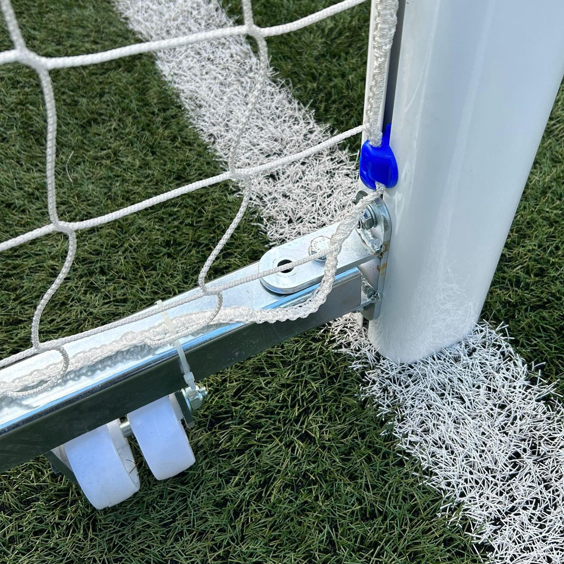 Todas las porterías abatibles SOFTEE de aluminio incluyen: marco de postes y larguero en aluminio, escuadras metálicas interiores de unión largueros/postes, ganchos de poliamida para sujetar la red a la parte trasera del marco y un sistema de abatimiento lateral compuesto por dos postes traseros metálicos cincados al cual se le unen dos fondos graduables también del mismo material.Incluye sistema de bloqueo de plegado. No incluye redes.*Importante: Este producto se debe anclar siempre al suelo.Estas porterías se fabrican siempre bajo pedido.