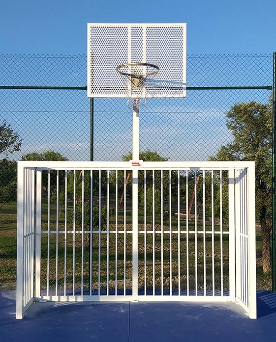 PRODUCCIÓN BAJO PEDIDO. ANCLAR SIEMPRE AL SUELO. Porterías compuestas por marco (largueros y postes) de dimensiones normativa FIFA de 3,00 x 2,00 mts interiores, provisto de arquillos metálicos reforzados de sección de 25 mm que hacen la función de red y canasta con tablero antivandalico con chapa perforada de dimensiones minibasket pero con la altura reglamentaria al aro de baloncesto, el vuelo de dicha canasta es de 65 cm. IMPORTANTE, necesario y obligatorio el anclaje al suelo de la estructura mediante las 7 pletinas con agujeros de 1,5 cm que lleva incluidos para poder atornillarlo al suelo cada portería. No incluye ni aros, ni redes, se puede seleccionar cualquiera de dichos productos de nuestro catálogo. Posibilidad de pintado en color gris, verde, blanco. consulte otras opciones.