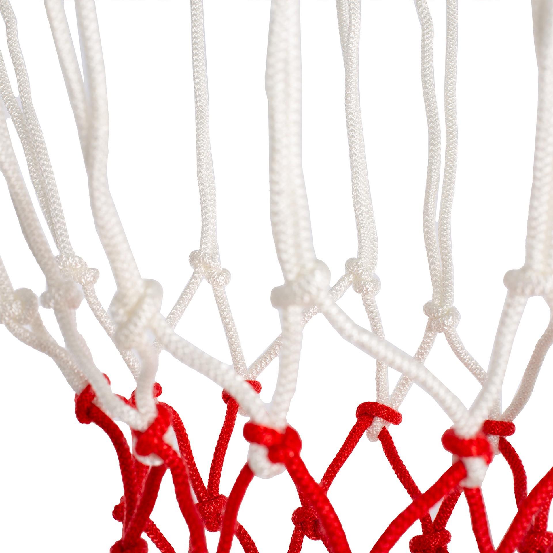 Juego de 2 redes de baloncesto bicolor para 12 ganchos de hilo de polipropileno en 6mm de grosor. Hilo de alta densidad y nudo de gran calidad Saber más