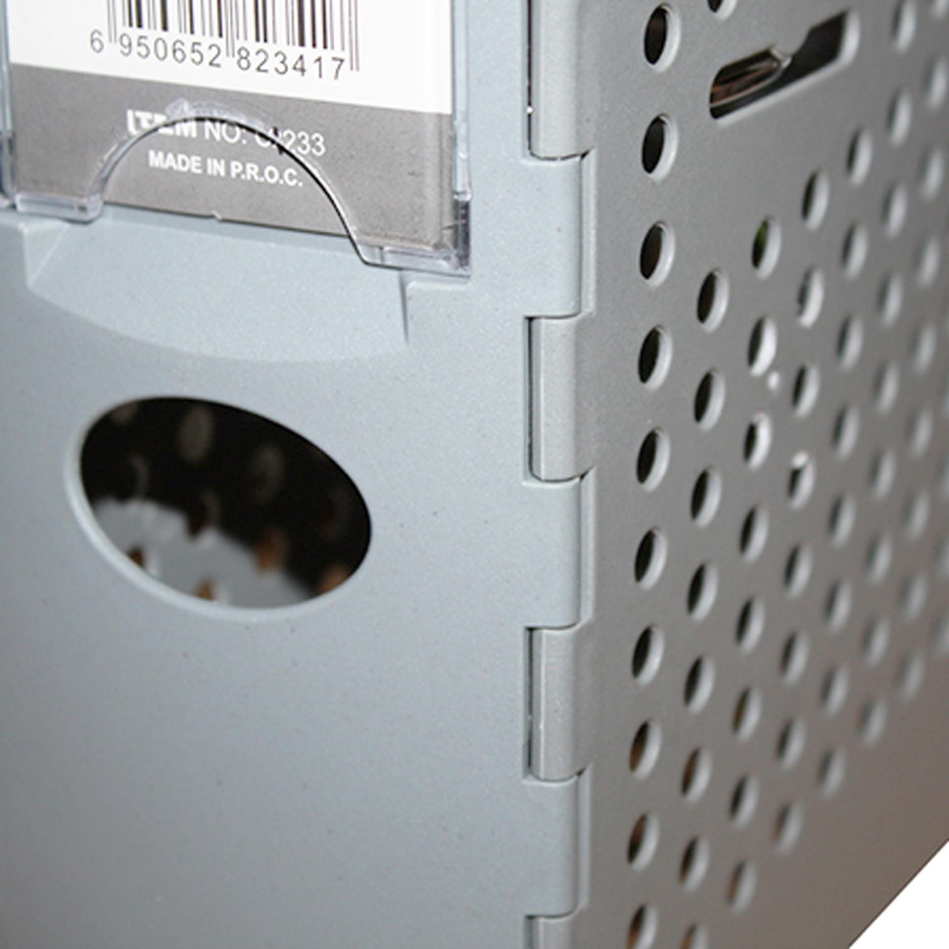 Diseño para almacenaje de documentos.Medidas: 32 x 29 cm.Material: ABS super resistente e higiénico.Color: Negro, azul y gris. Saber más
