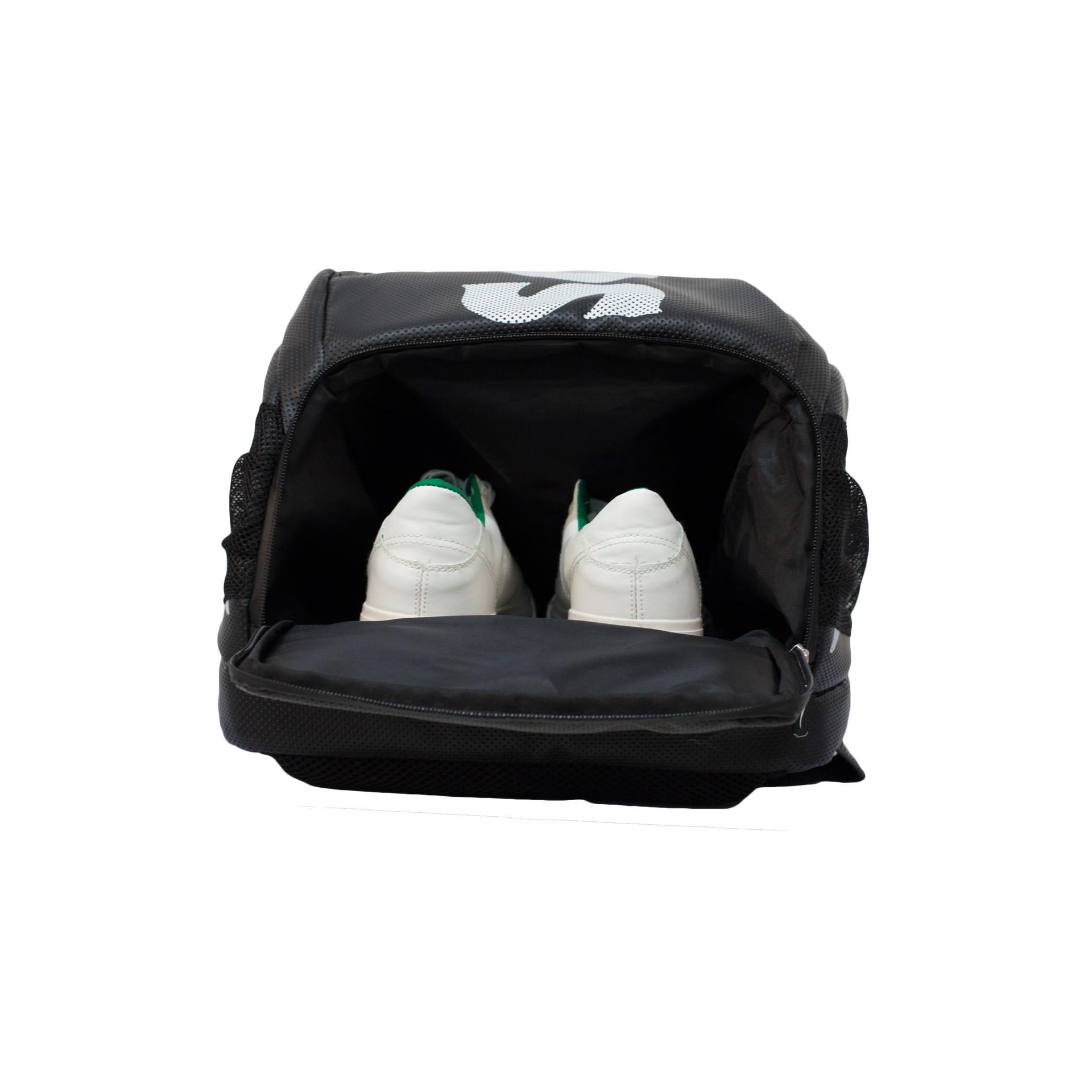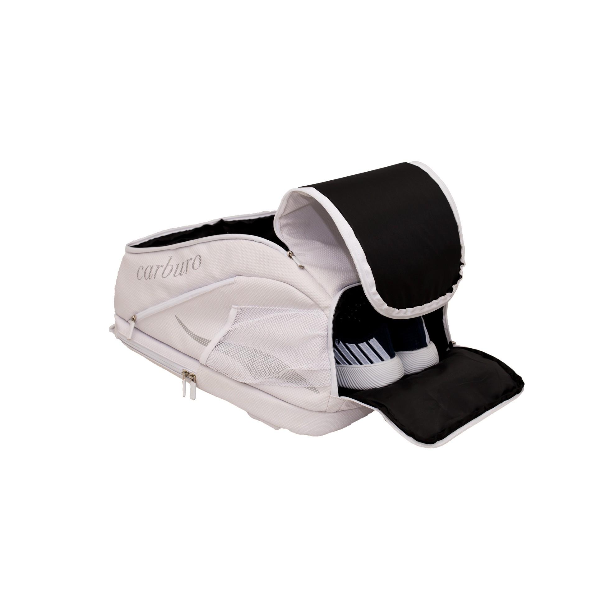 Mochila de pádel fabricada en poliuretano de alta calidad. Ideal para llevar tus enseres a entrenamientos y partidos. Cuenta con diversos compartimentos: para pala, zapatillero, principal... Medidas: 47x30x16 cm.La caja completa incluye 10 paleteros. Medidas de la caja: 50x38x60cm. Peso: 10kg.
