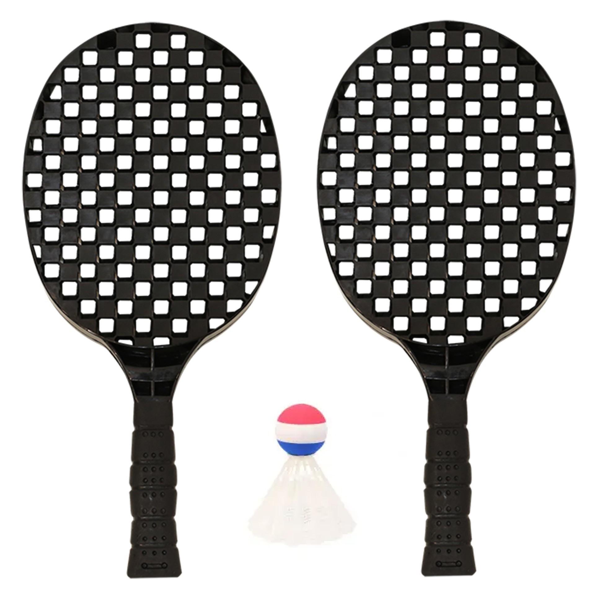 Set compuesto por dos raquetas de shuttleball y un supervolante. Se recomienda utilizar estas raquetas con supervolante. No apto para pelota de tenis. Agarre... Saber más